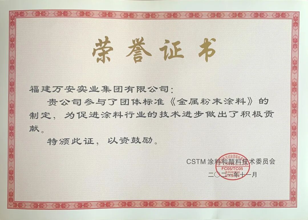 福建萬安集團深耕粉末涂料領(lǐng)域25年,作為一家中國本土成長起來的民族企業(yè),始終堅持核心技術(shù)自主研發(fā)道路,積極參與行業(yè)標準化建設(shè),助力行業(yè)健康發(fā)展。